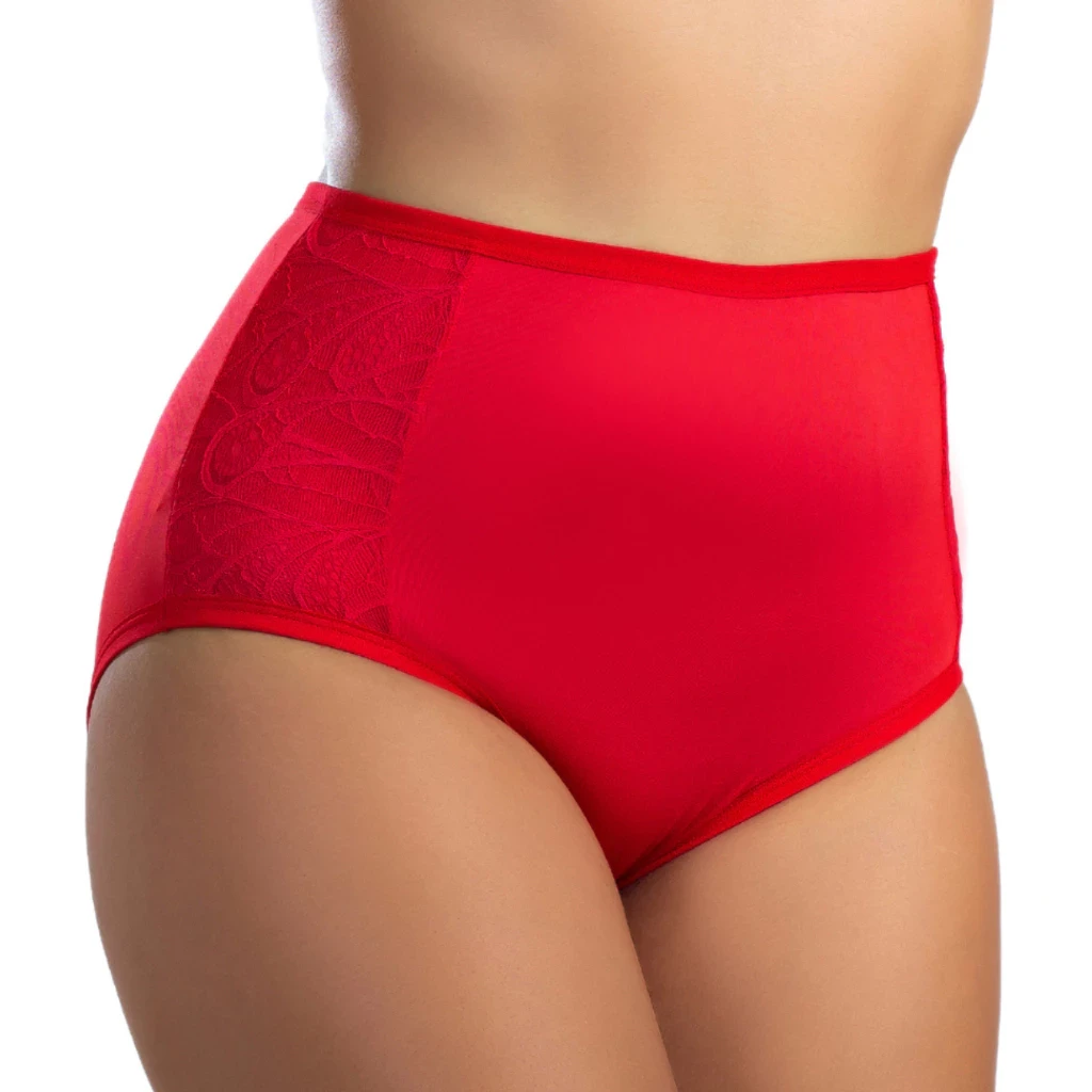 calcinha de poliéster com detalhe em renda poliamida viés largo na cintura - forro de algodão